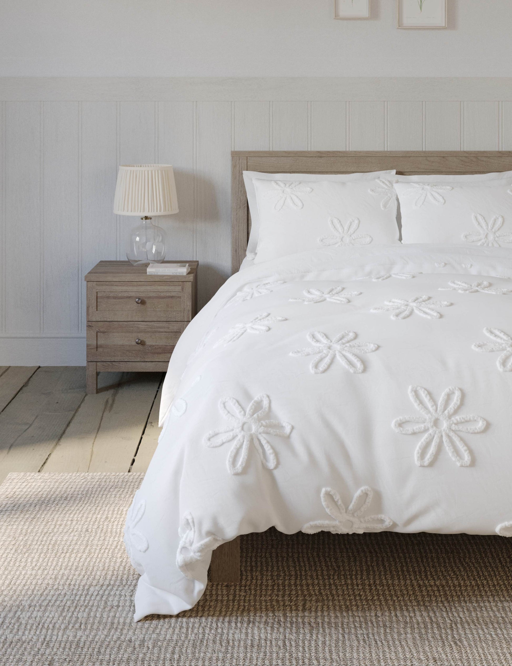1 edredón blanco con diseño floral en relieve