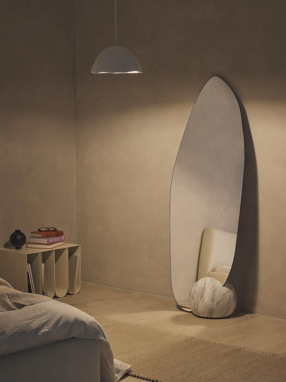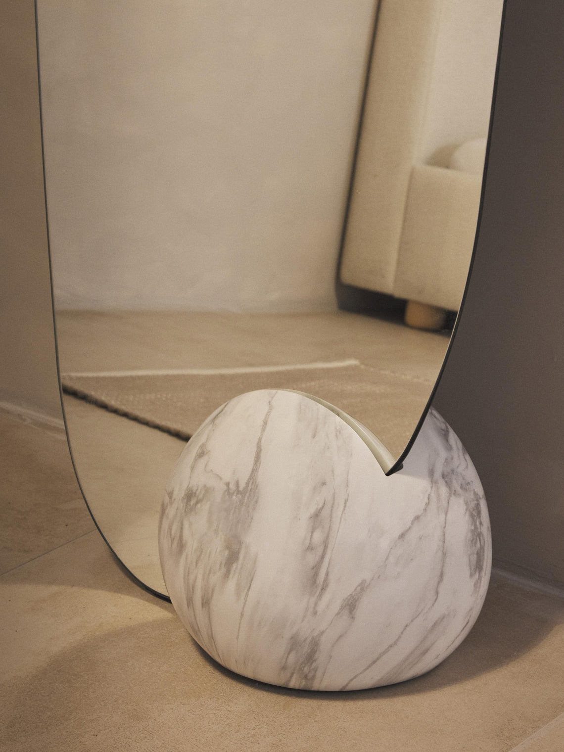El Espejo “Luna” es una pieza de diseño contemporáneo que une arte y funcionalidad. Su forma asimétrica se sostiene sobre una base de mármol esférica, creando un equilibrio perfecto entre lo minimalista y lo escultórico. Ideal para quienes buscan un elemento decorativo que sea protagonista, este espejo transforma cualquier estancia en un espacio sofisticado y único.
