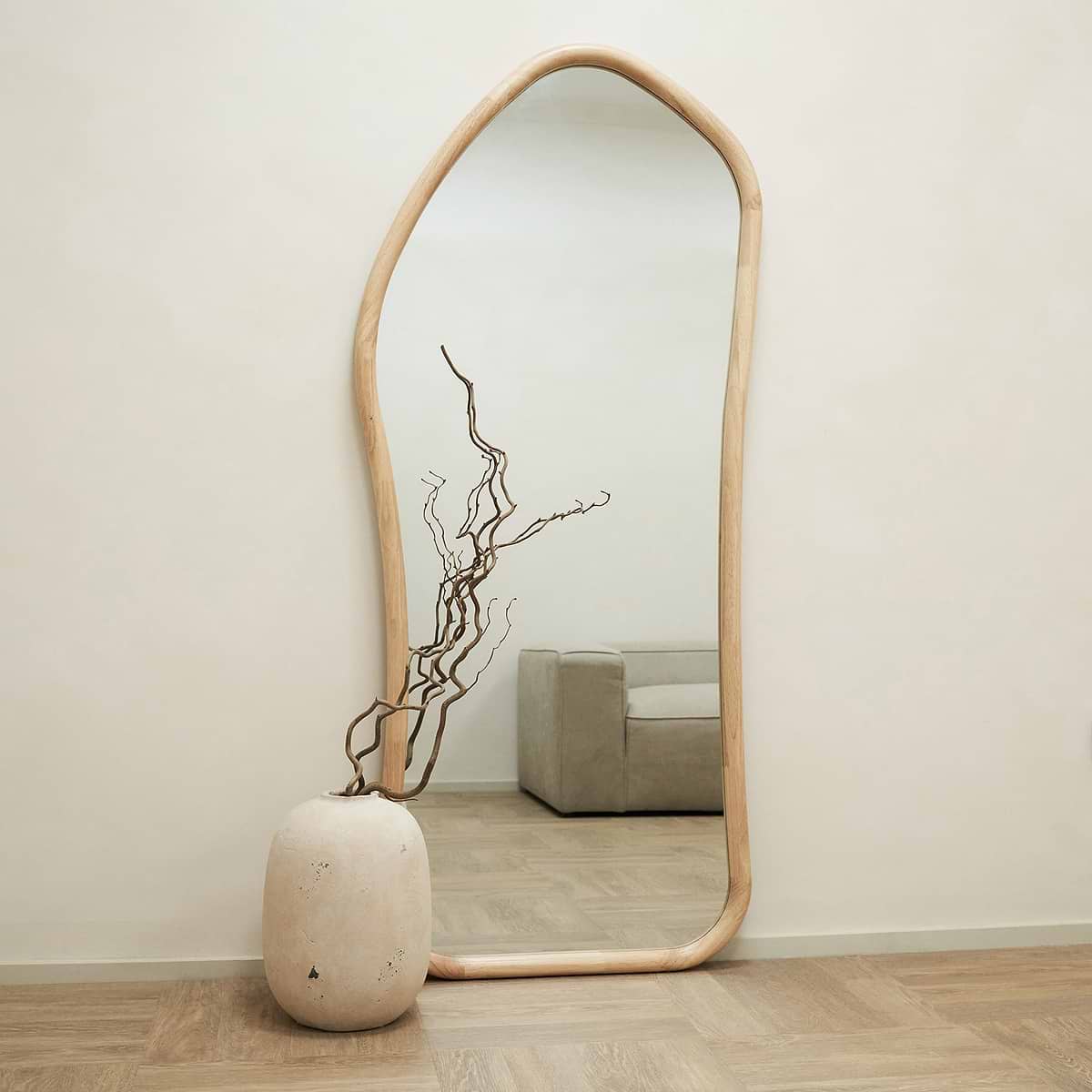 El Espejo “Savia” destaca por su marco de madera natural y su diseño de líneas curvas que aportan fluidez y movimiento. Su acabado cálido y elegante lo convierte en una pieza versátil que encaja en estilos boho, nórdicos o wabi-sabi. Más que un espejo, es un detalle que refleja luz, amplitud y un aire artesanal en tu hogar.